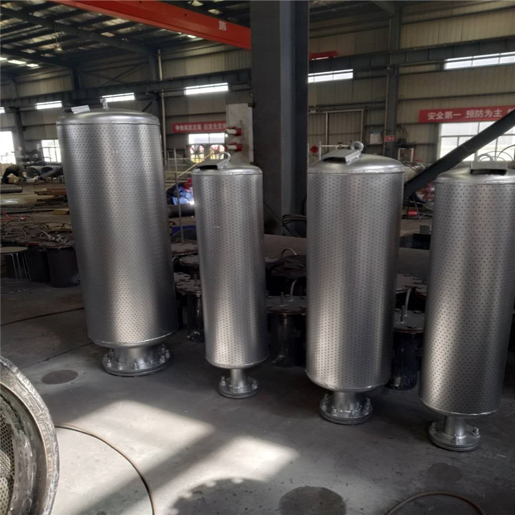 鍋爐排汽消聲器是建立在微穿孔板消聲原理上制造。電廠鍋爐蒸汽排放一般流速大,而流速大對小孔消聲影響大。所以我們需先控流,經過一次控流后的蒸汽再進入擴張室,再進一步降壓消聲。蒸汽經大容積降壓后,從而形成低壓蒸汽噴出。在此過程中,氣流是經小孔徑噴出。噴出后其各倍頻帶的聲功率已降低,而聲壓級的頻率被推高到20000Hz以上范圍,其噪聲大為削弱。但部分頻率的二次噪音還需要進一步消聲。我們在擴張室外加裝阻性吸聲棉結構,它系根據降壓體所發出的剩余噪聲的頻譜特性所設計,用以有效地吸收剩余噪聲。當用戶按要求安裝后,總消聲量要達30-60分貝,使之達到要求。